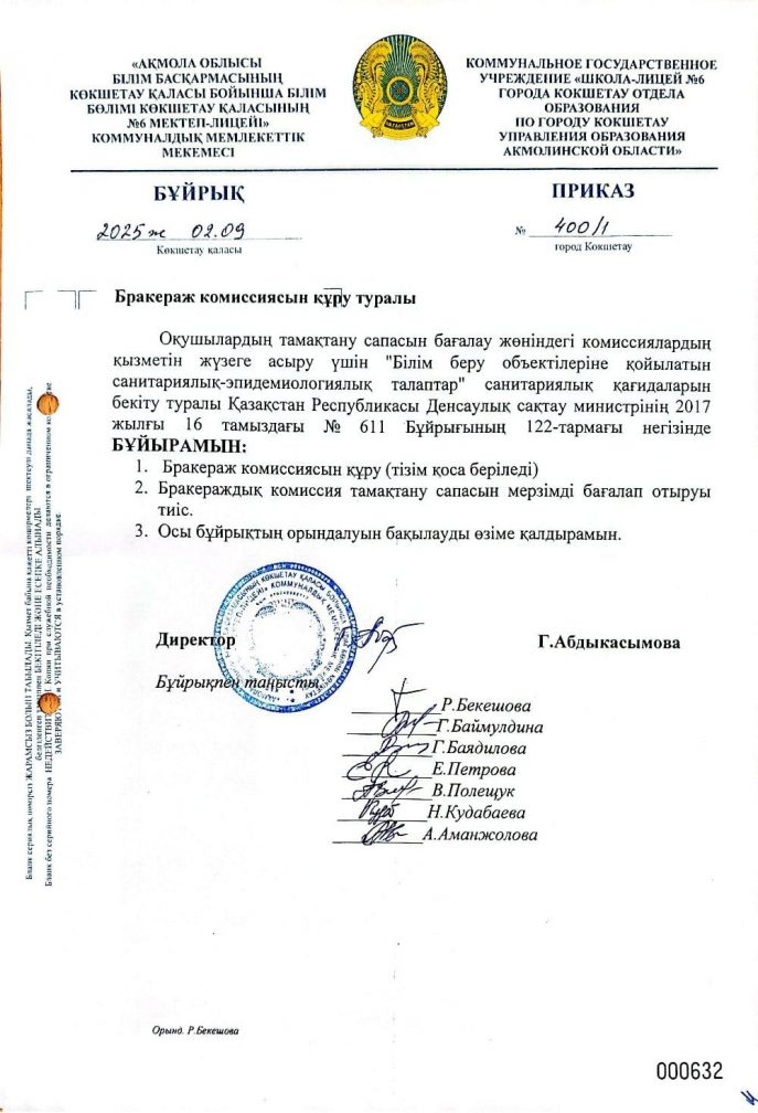 2025 - 2026 бракераж комиссиясын ұйымдастыру