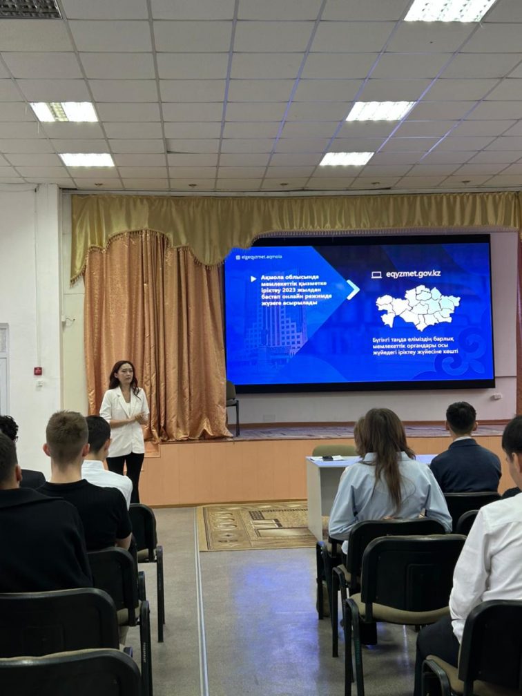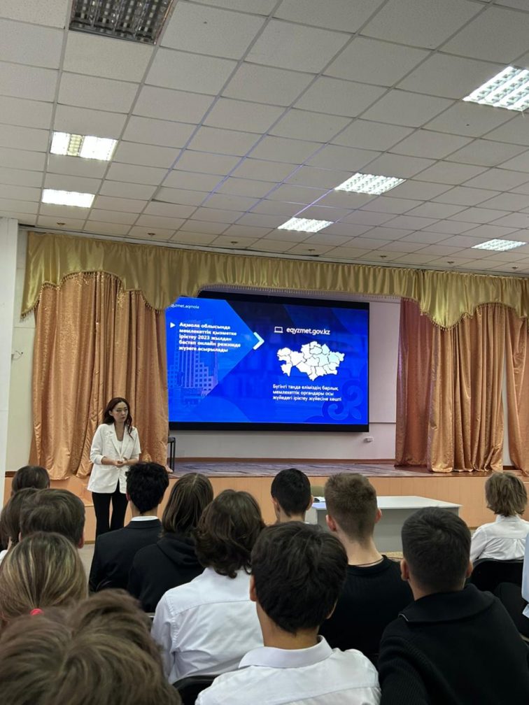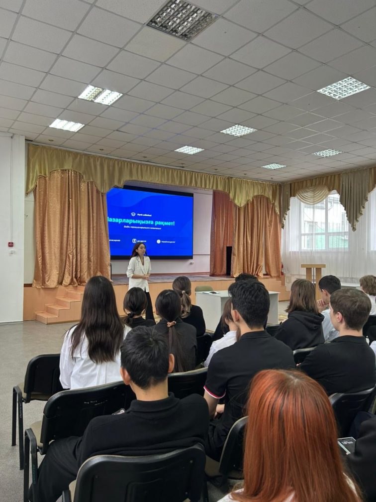Адал азамат» біртұтас тәрбие бағдарламасы, «Еңбегі адал-жас өрен» жобасы аясында 2025 жылдың 20 қараша күні мектебімізге кәсіби бағдар беру жұмыстарын жүргізу мақсатында Ақмола облысы бойынша Қазақстан Республикасы Мемлекеттік қызмет істері агенттігінің департамент өкілдері келді. Мемлекеттік қызмет басқармасының бас мамандары Ж. Сейтмағанбетова және Г. Омарова 11-сынып оқушыларына болашақ мамандықты саналы таңдау және мемлекеттік қызметке түсу жолдары туралы мазмұнды дәріс өткізді.Оқушыларға мемлекеттік қызметтің қоғам алдындағы жауапкершілігі, адалдық пен әділдікті ұстану қағидалары туралы маңызды ақпарат беріліп,кәсіби бағыт таңдауда құнды кеңестер ұсынылды.